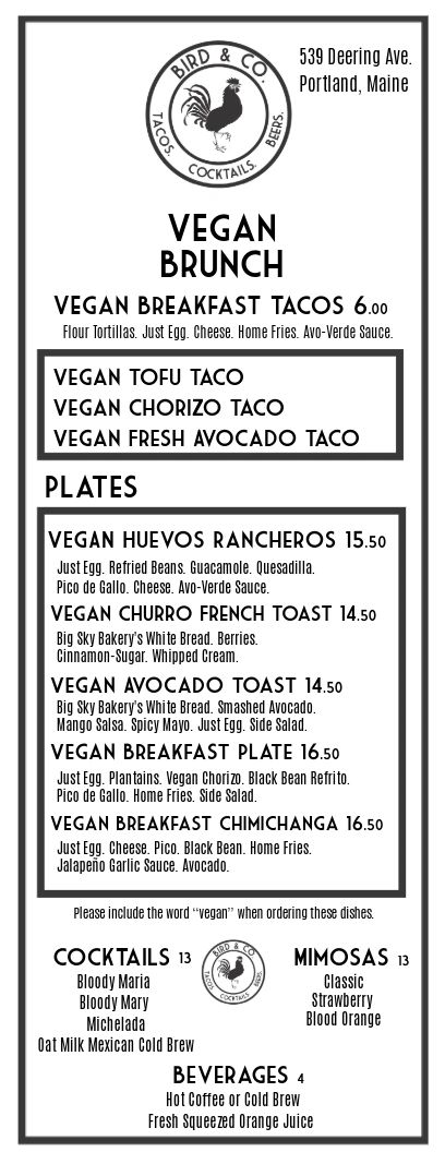 Weekend Vegan Brunch/Lunch Menu 10:00-2:00